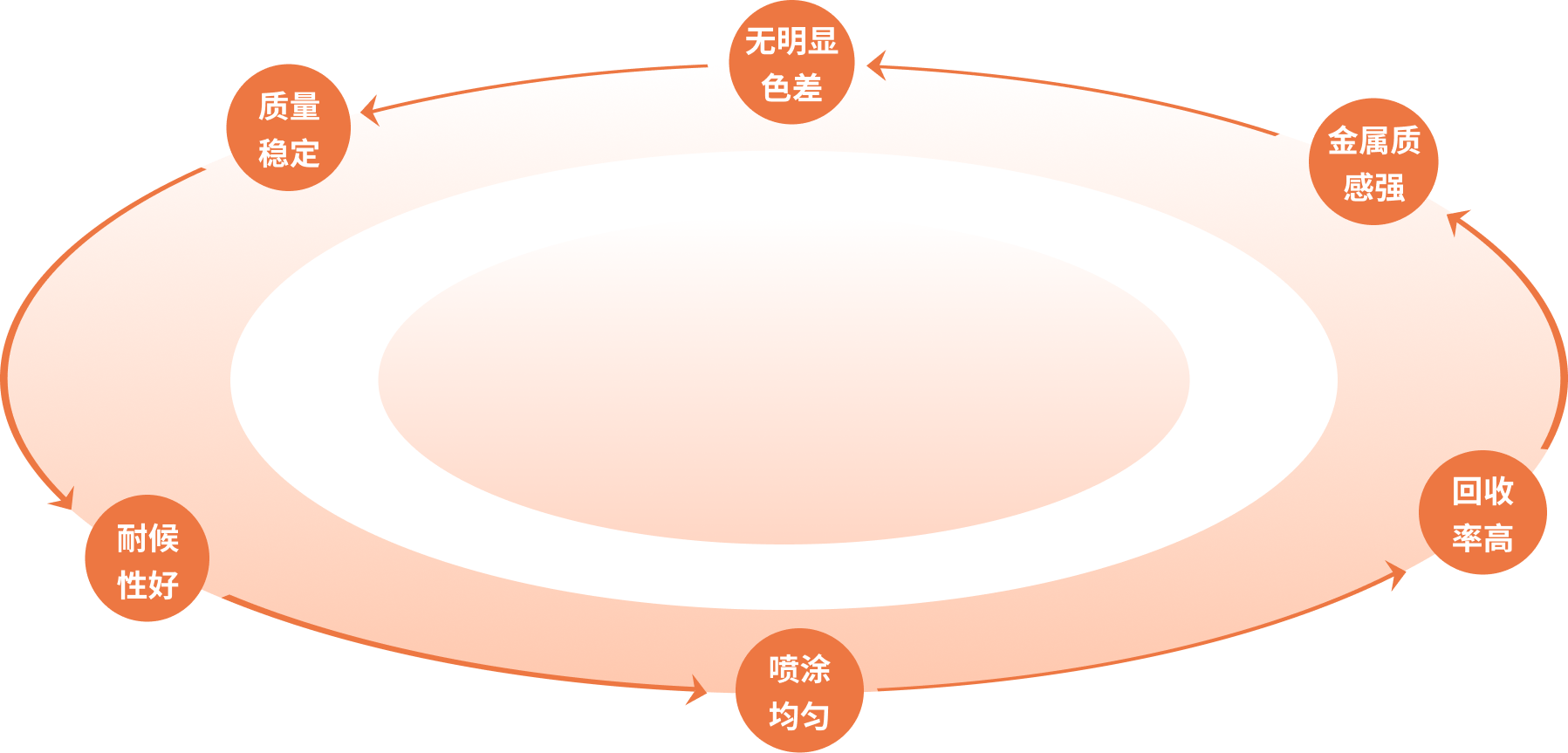 “漆改粉”特色品種,顏色穩(wěn)定金屬效果強,對金屬基材附著力好;金屬粉末涂料采用德國進(jìn)口綁定機生產(chǎn),批次色差穩(wěn)定。避免了干混金屬粉積槍頭現(xiàn)象,新粉回收粉同樣可應(yīng)用;金屬效果顏料含量高,立體幻彩閃爍效果; ...
